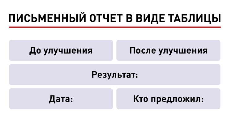 Всегда (!) по завершении каких-либо улучшений составляется письменный отчет в виде маленькой таблички по следующей форме: